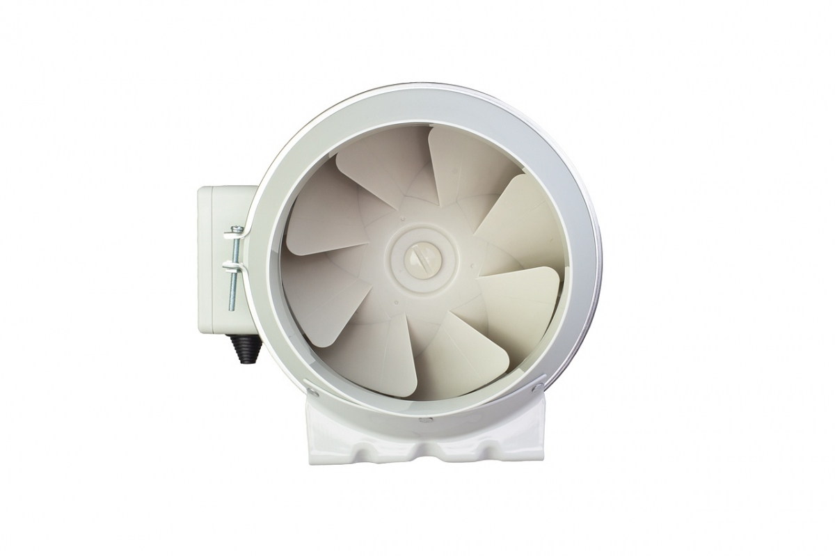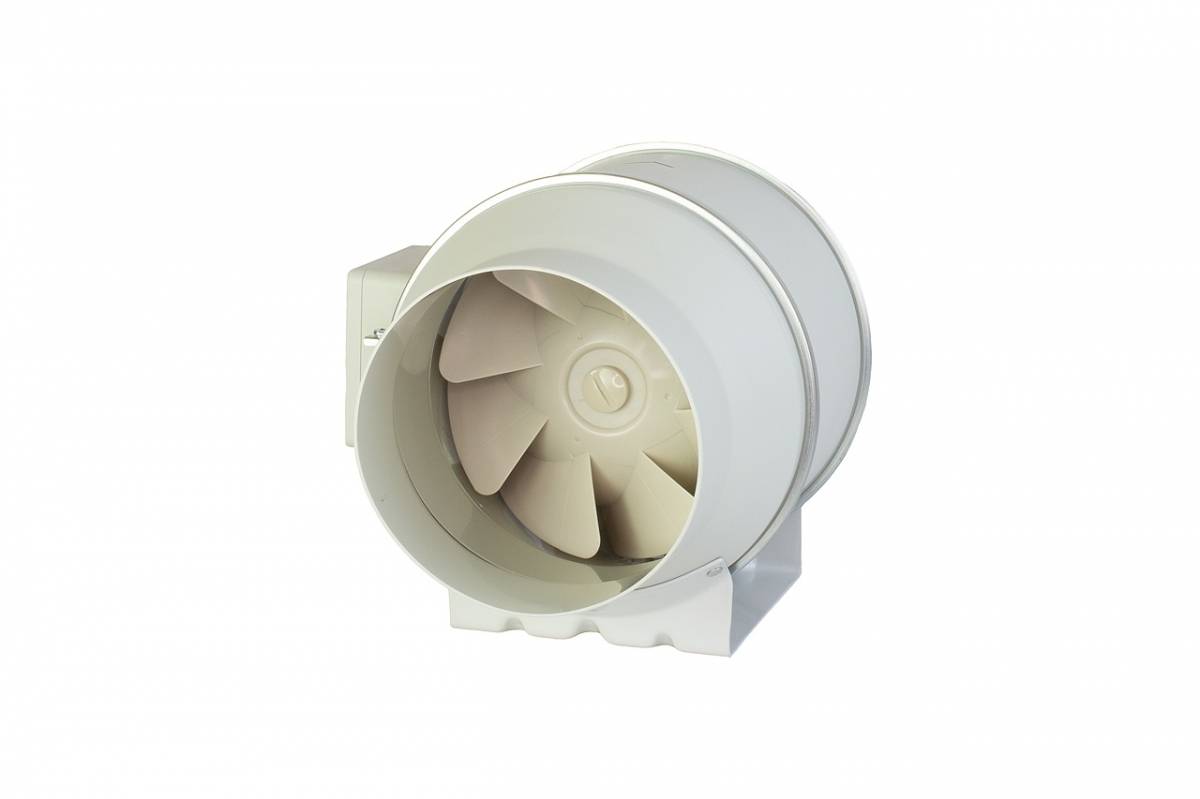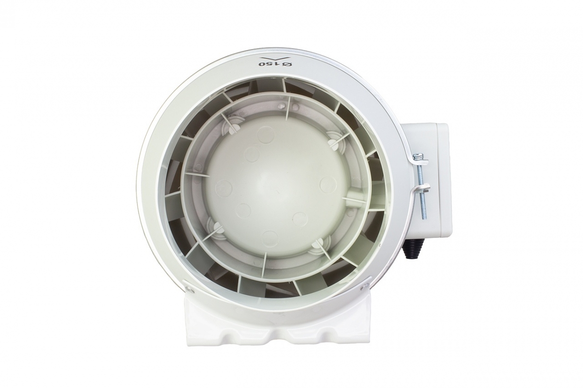 Вентилятор состоит из двух частей: монтажного кронштейна и закрепленного на нем корпуса вентилятора. Корпус вентилятора и патрубки изготовлены из негорючего полипропилена V0, имеют повышенный класс брызгозащиты и обладают диэлектрическими свойствами. Кронштейн выполнен из качественной листовой стали.