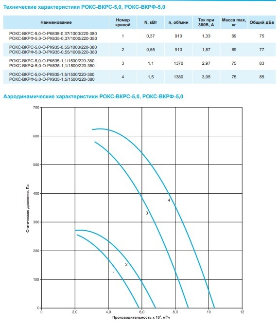 Вентиляторы выпускают с двумя типами рабочих колес РК635 и РК935 с различными расходными характеристиками.