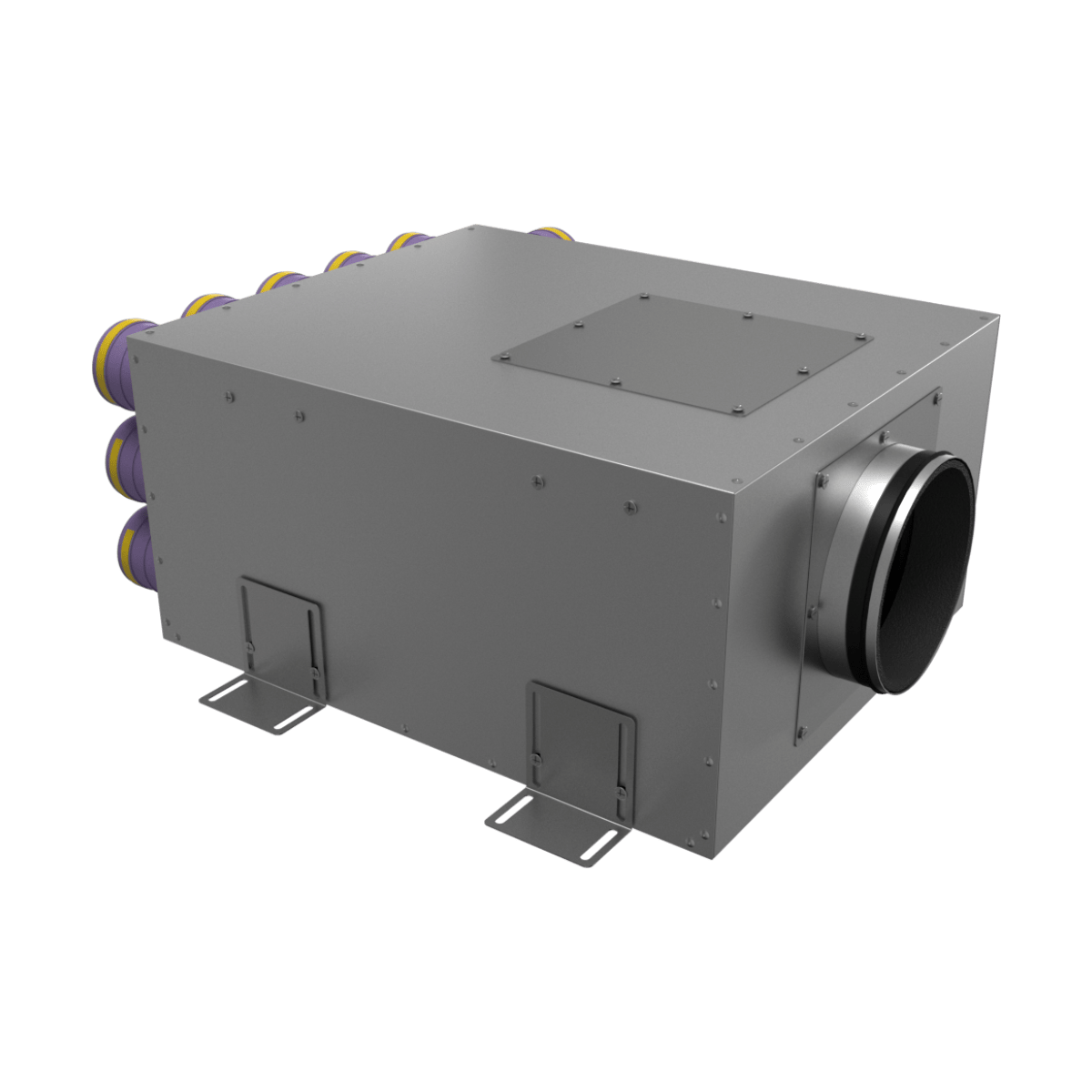Коллектор устанавливается на четыре монтажных кронштейна (в комплекте). Гибкие воздуховоды Provent RP 75 фиксируются специальными замками Provent LK 75 на присоединительных фланцах (фланцы и замки в комплекте).