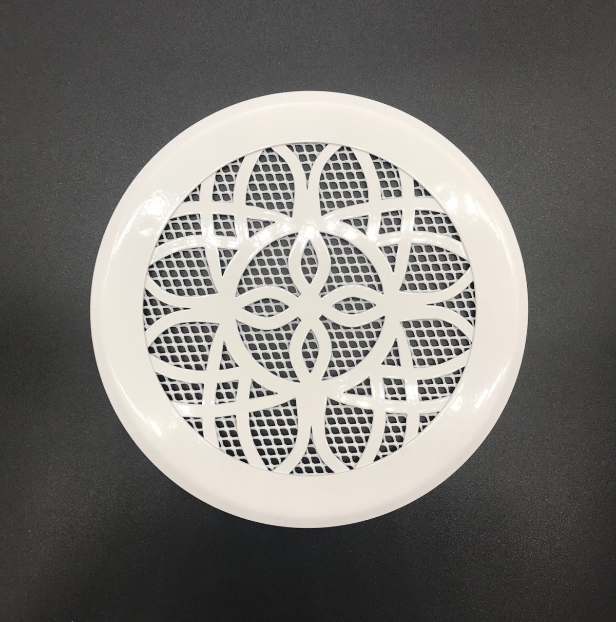 Решетка устанавливается на проем диаметром 100мм и имеет внешний диаметр 140мм