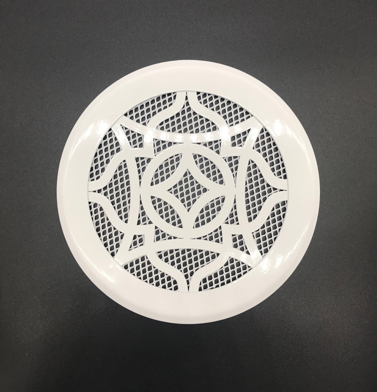 Решетка устанавливается на проем диаметром 100мм и имеет внешний диаметр 140мм