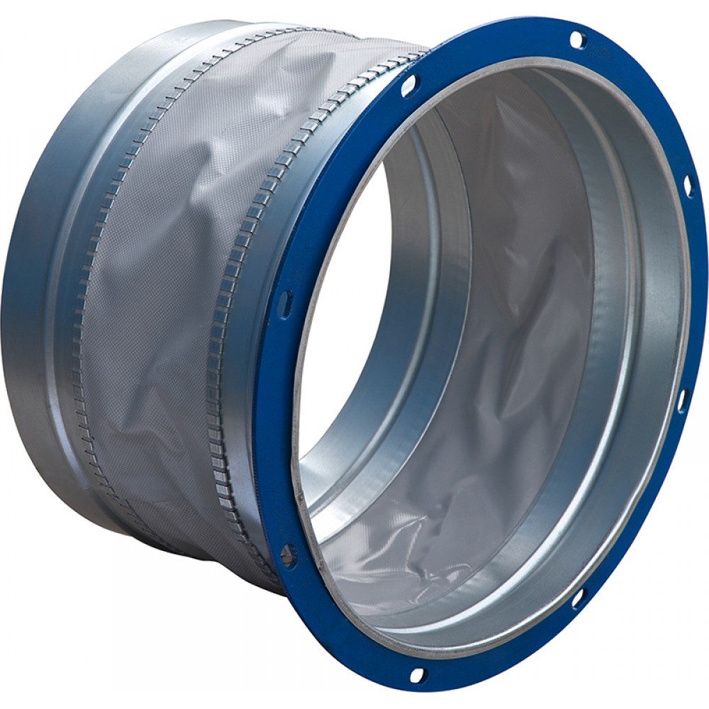 Корпус вставки изготовлен из оцинкованной стали, в середине закреплена тканевая лента, обеспечивающая герметичность канала. Конструкция вставки позволяет крепить её к фланцам вентиляторов с помощью болтов или реечного соединения.