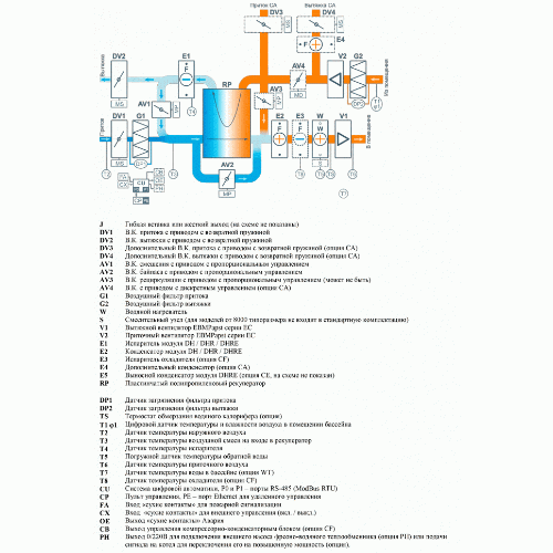 | PW – Дополнительный водяной калорифер (преднагреватель – ограничитель) |