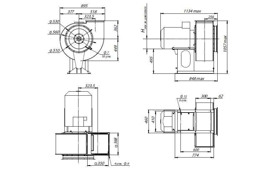 Вентилятор радиальный ВЦ 14-46 (ВР-280-46) №5,0 (7,5кВт/1000об) Среднего давления