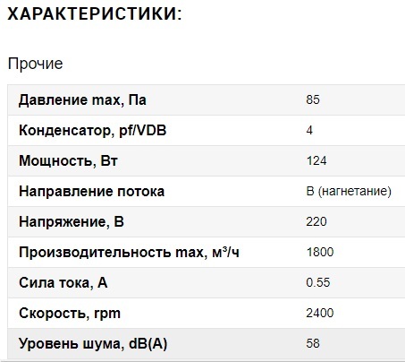 Давление max, Па85 Конденсатор, pf/VDB4 Мощность, Вт124 Направление потокаB (нагнетание) Напряжение, В220 Производительность max, м³/ч1800 Сила тока, А0.55 Скорость, rpm2400 Уровень шума, dB(A)58
